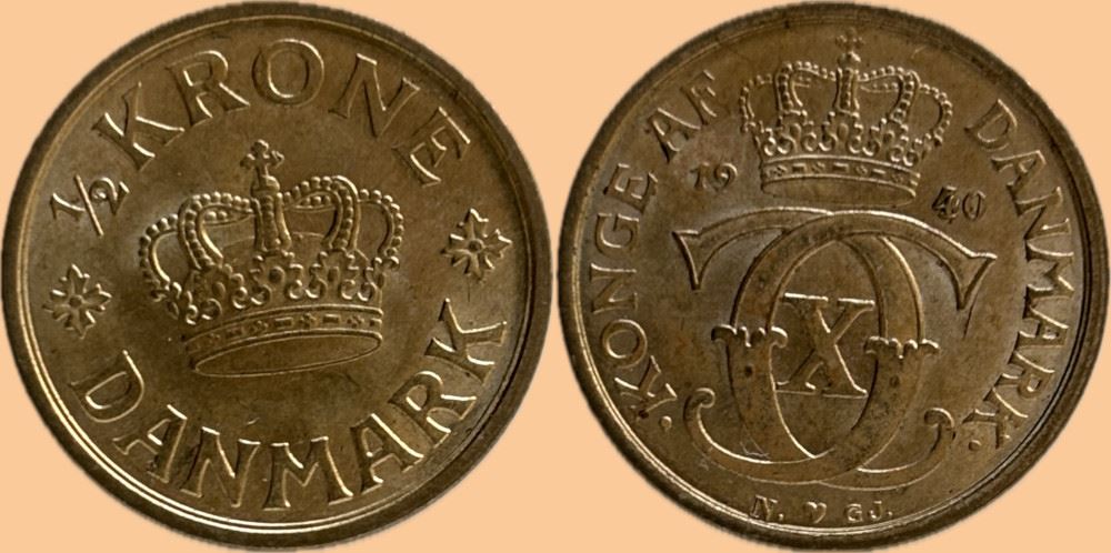 1/2 kr. 1940 i kv. 0 - lille plet på 4 tal