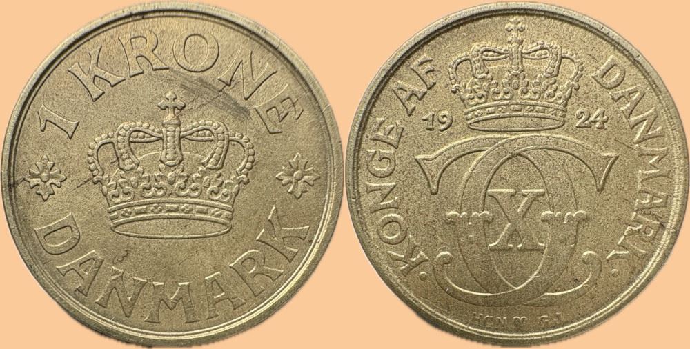 1 kr. 1924 i kv. (1+ - 01) - overfladiske tæringsspor