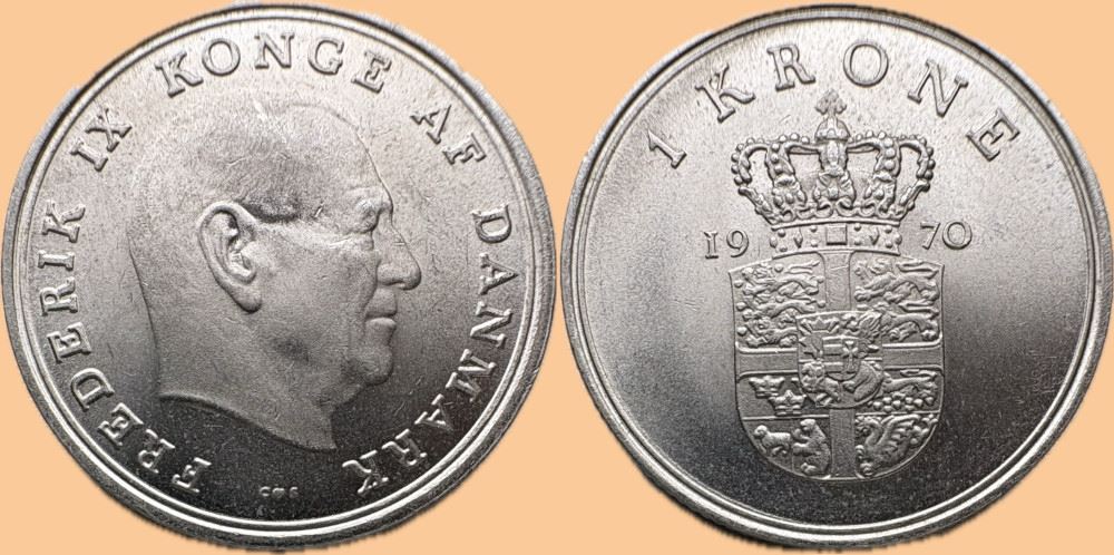 1 kr. 1970 i kv. 0 - M - har lidt medaljepræg over sig