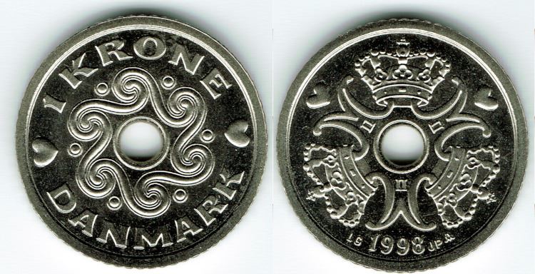 1 kr. 1998 i kv. S - fra Kgl. møntsæt