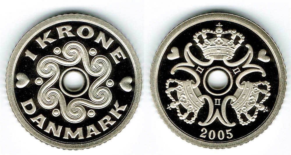 1 kr. 2005 i kv. M - fra Kgl. Proof møntsæt