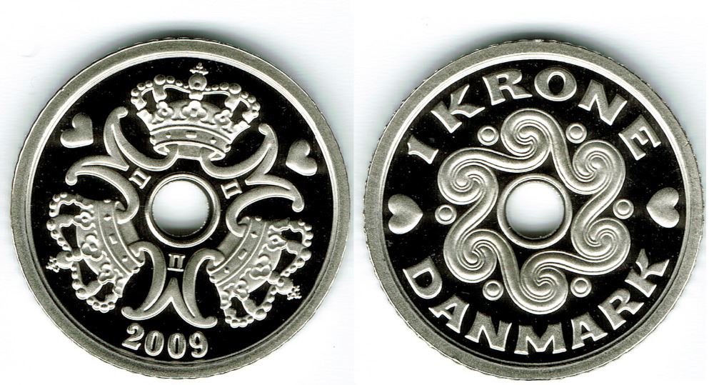 1 kr. 2009 i kv. M - fra Kgl. Proof møntsæt