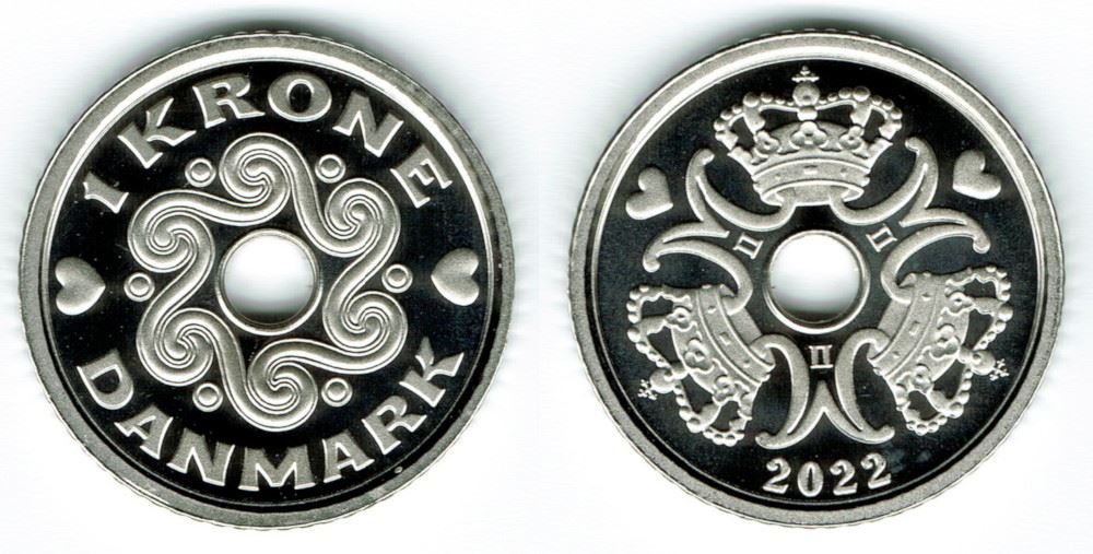 1 kr. 2022 i kv. M - fra Kgl. Proof møntsæt