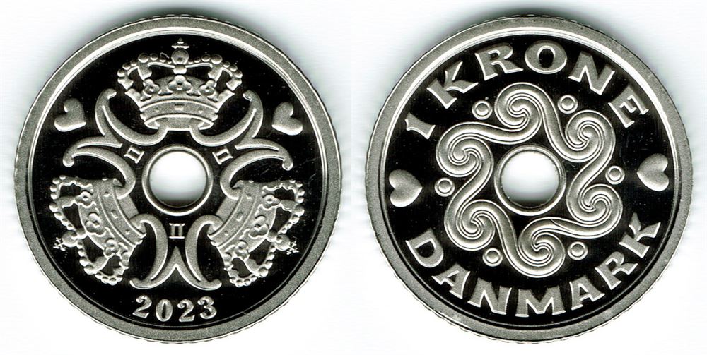 1 kr. 2023 i kv. M - fra Kgl. Proof møntsæt