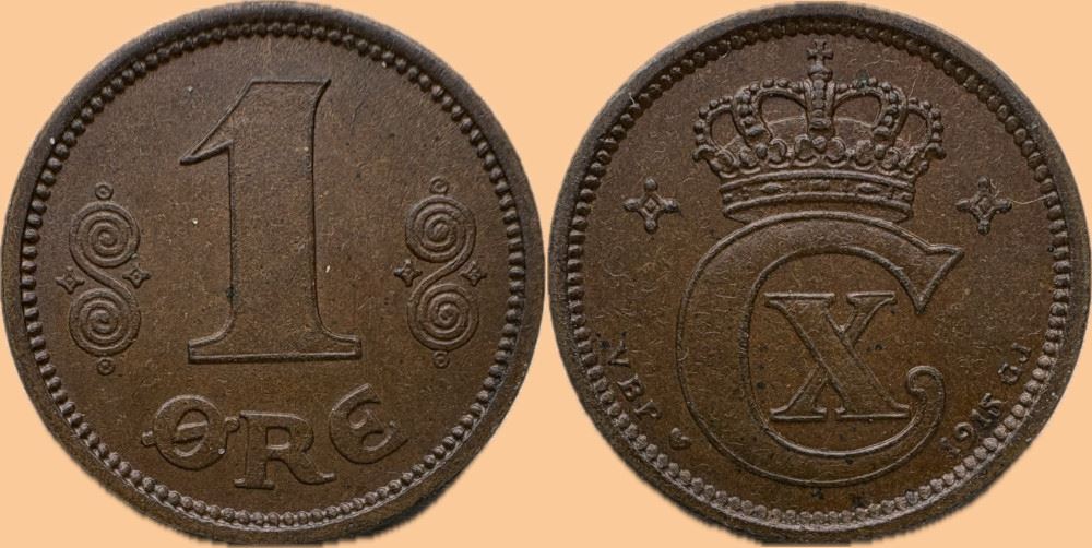 1 øre 1915 i kv. 01- meget velpræget eksemplar