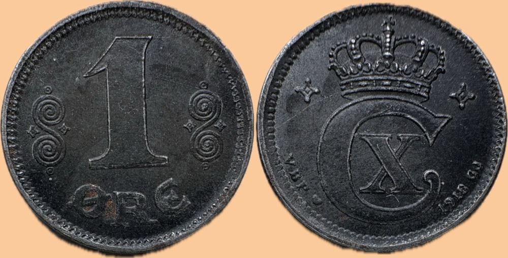 1 øre 1918 i kv. 01 - sjældent flot præget i kronen og med pænt velbevaret zinklag