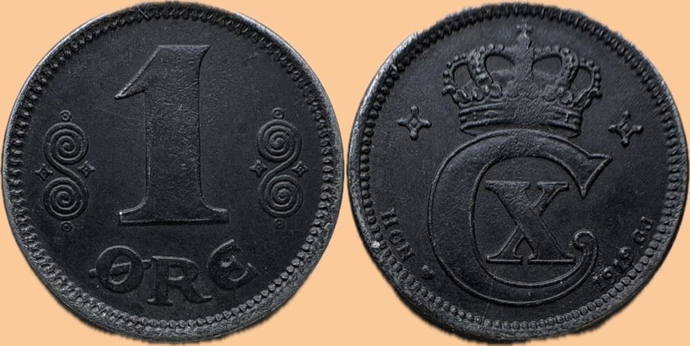 1 øre 1919 jern i kv. (0) - har det sædvanlige fladpræg i kronen - flot zinklag