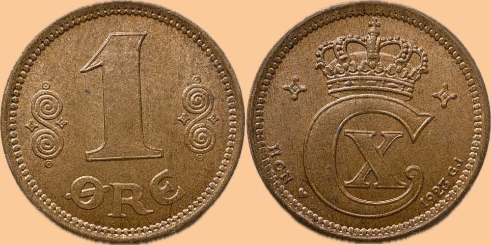 1 øre 1923 i kv. 0 - flot lysebrun farve