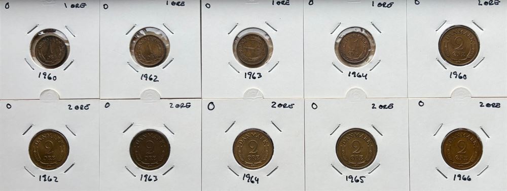 1 øre og 2 øre 1960 - 1964 bronze - hækkerupsæt i hartberger