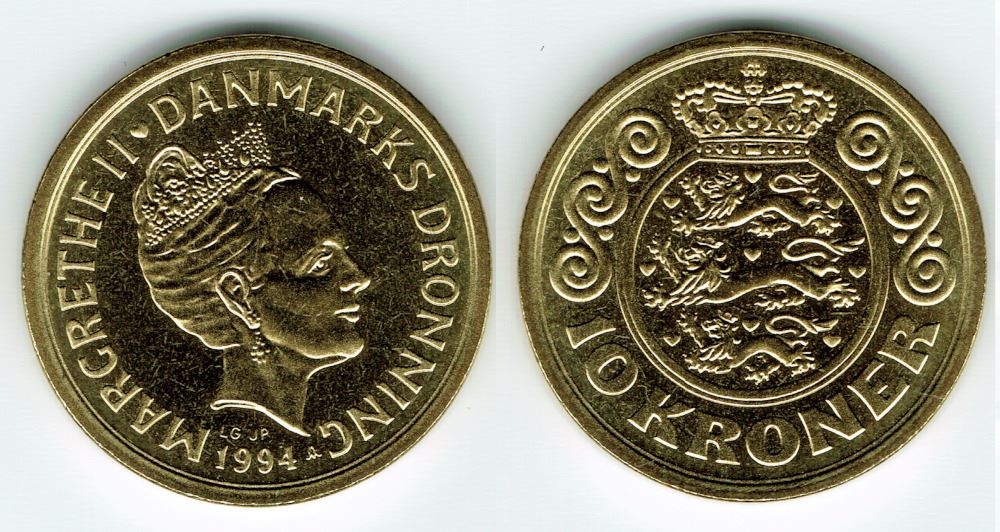 10 kr. 1994 i kv. S - fra Kgl. møntsæt