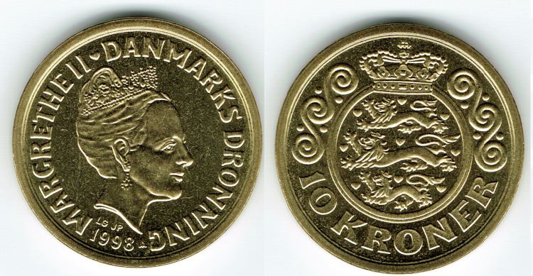 10 kr. 1998 i kv. S - fra Kgl. møntsæt