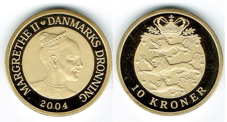 10 kr. 2004 i kv. M - fra Kgl. Proof møntsæt
