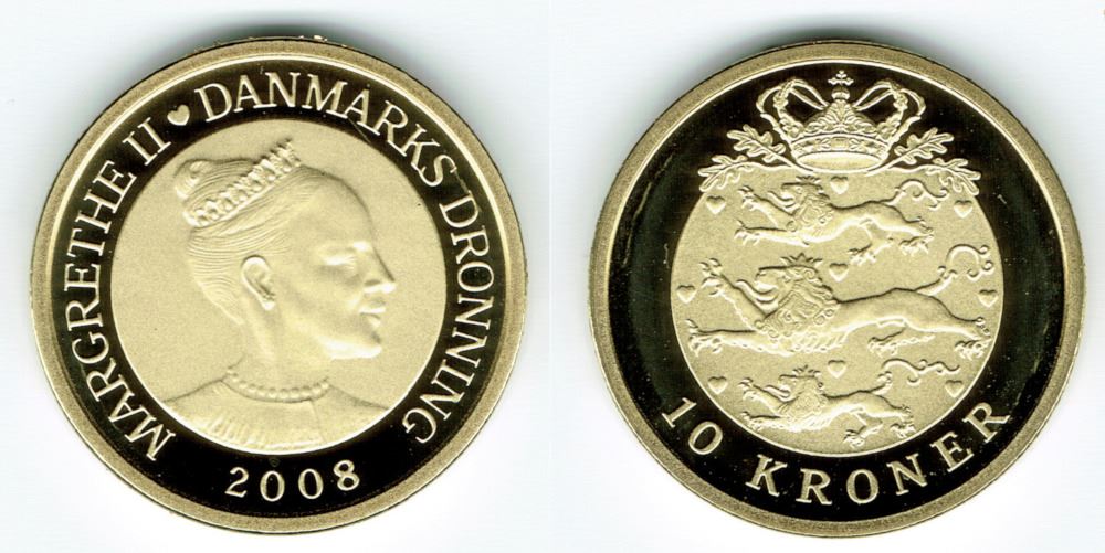 10 kr. 2008 i kv. M - fra Kgl. Proof møntsæt