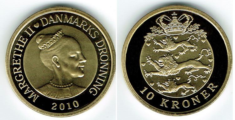10 kr. 2010 i kv. M - fra Kgl. Proof møntsæt