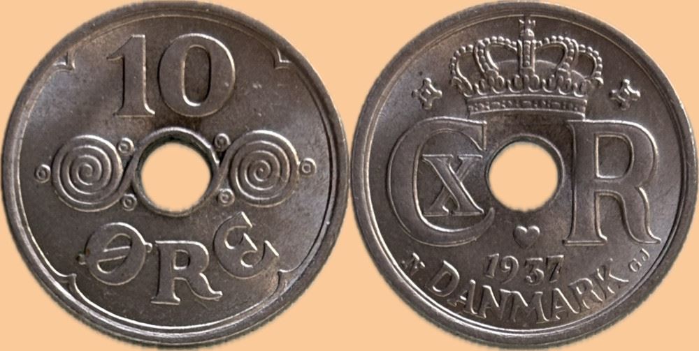 10 øre 1937 i kv. (0) - lidt svagt præget R