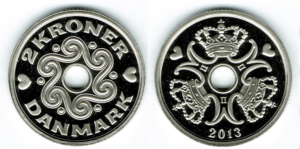 2 kr. 2013 i kv. M - fra Kgl. Proof møntsæt