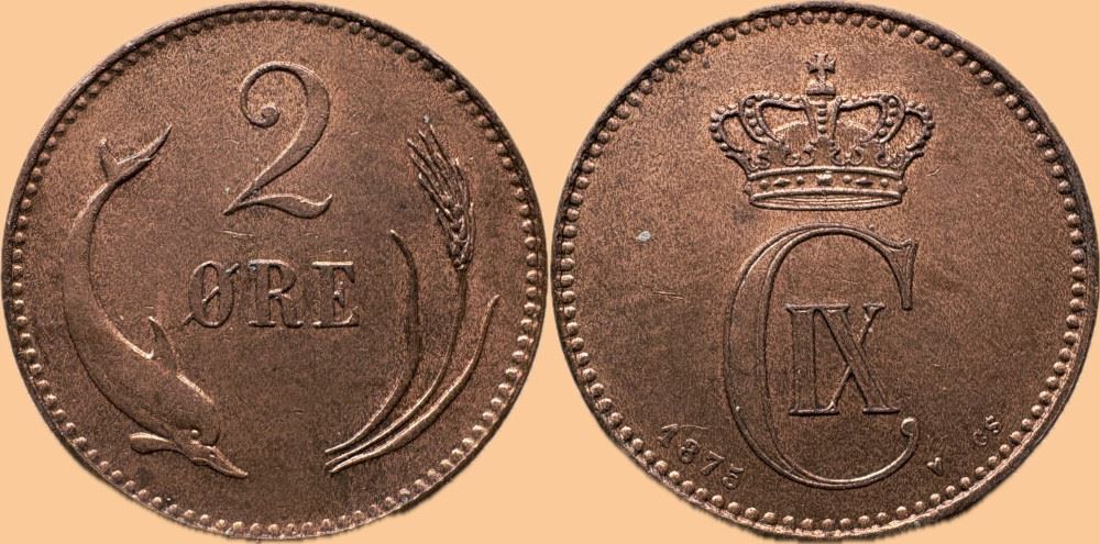 2 øre 1875 i kv. 0 - flot lysebrun farve