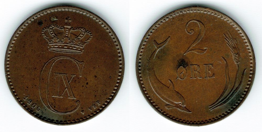 2 øre 1906 i kv. (01) - enkelte småpletter