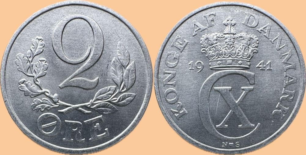 2 øre 1941 i kv. 0 - pænt eksemplar