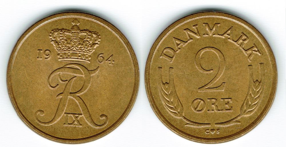 2 øre 1964 bronze i kv. 0 - fint eksemplar
