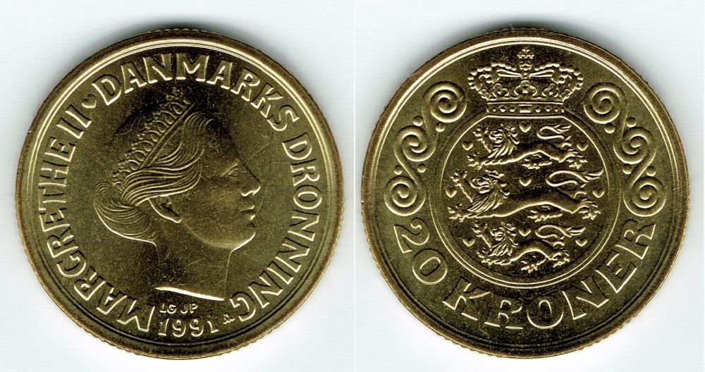 20 kr. 1991 i kv. S - fra Kgl. møntsæt