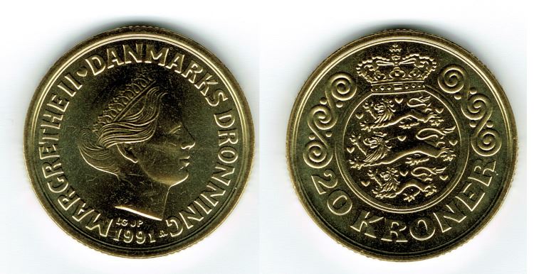 20 kr. 1991 i kv. S - fra Kgl. møntsæt