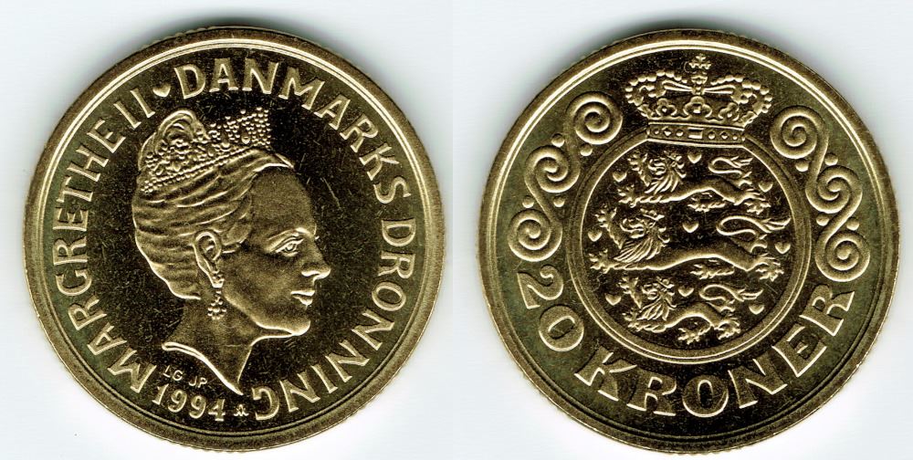 20 kr. 1994 i kv. S - fra Kgl. møntsæt