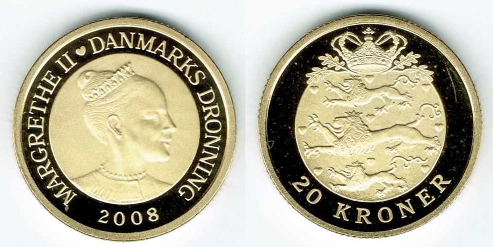 20 kr. 2008 i kv. M - fra Kgl. Proof møntsæt
