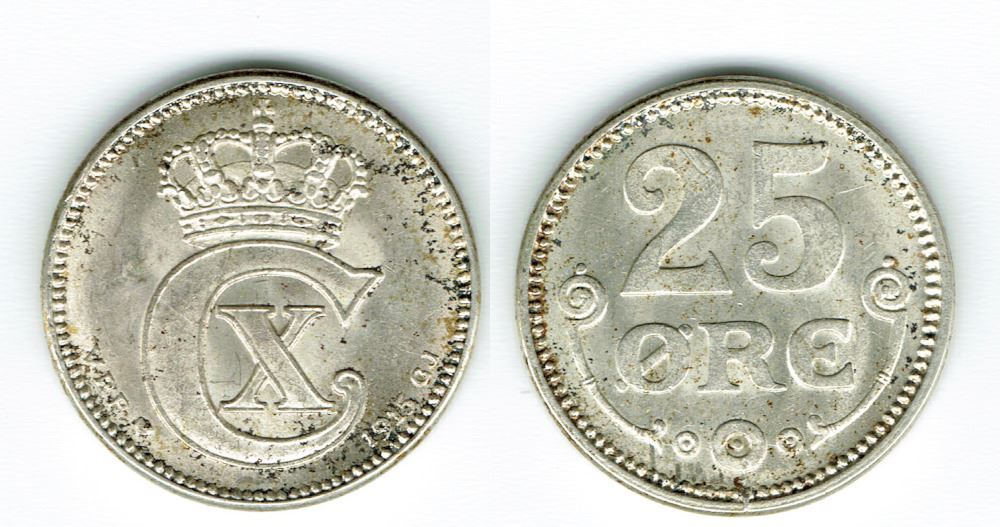 25 øre 1915 i kv. 01 - enkelte patineringpletter