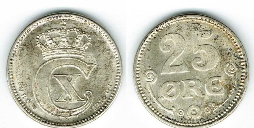 25 øre 1916 i kv. 0 - påbegyndende patina