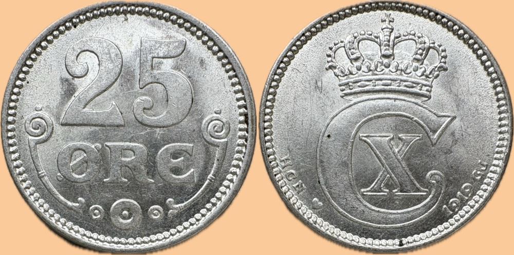 25 øre 1919 i kv. 0 - enkelte små pletter