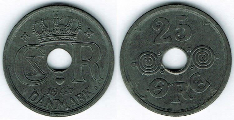 25 øre 1945 i kv. (0) - lidt svagt præget i kronen