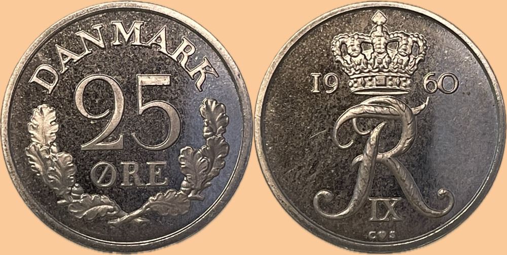 25 øre 1960 Sieg 6 i kv. M - pragteksemplar