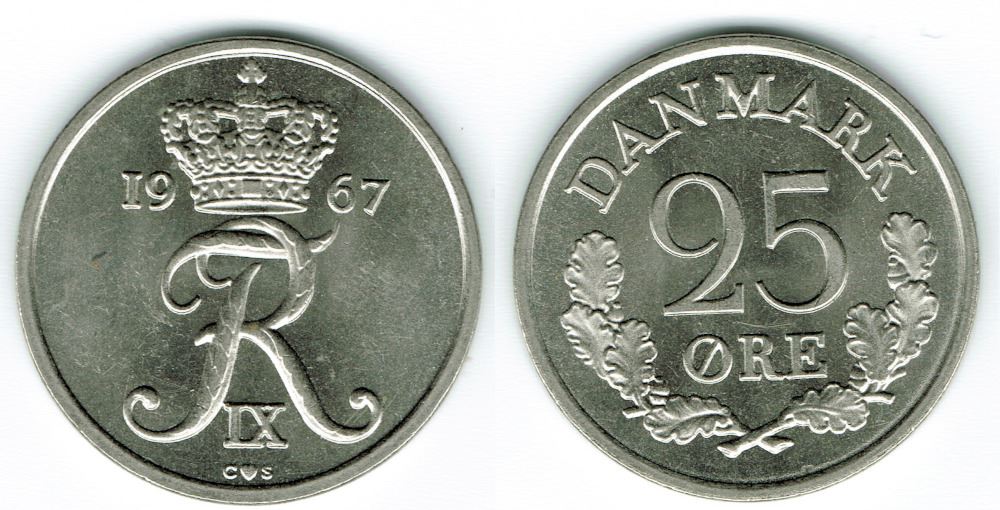 25 øre 1967 Sieg 6 i kv. 0
