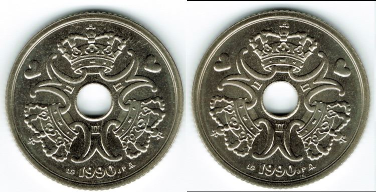 5 kr. 1990 i kv. S - fra Kgl. møntsæt