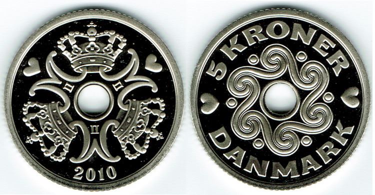 5 kr. 2010 i kv. M - fra Kgl. Proof møntsæt
