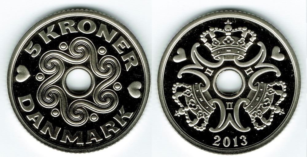 5 kr. 2013 i kv. M - fra Kgl. Proof møntsæt