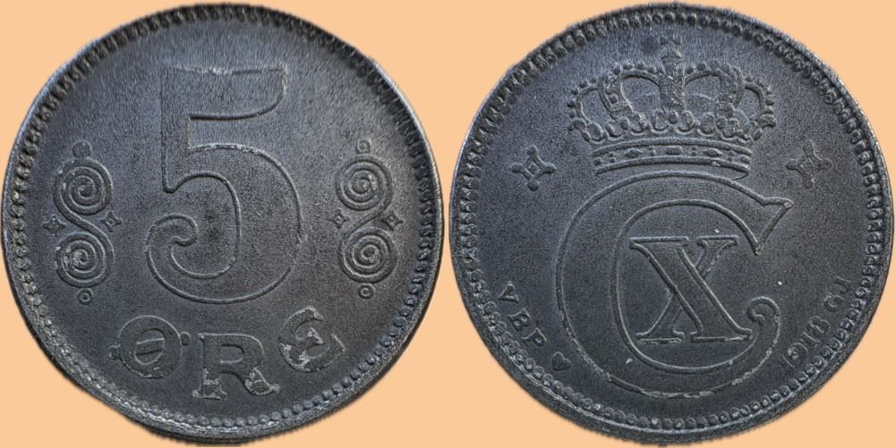 5 øre 1918 i kv. 01 - let fladpræget i kronen - fint velbevaret zinklag