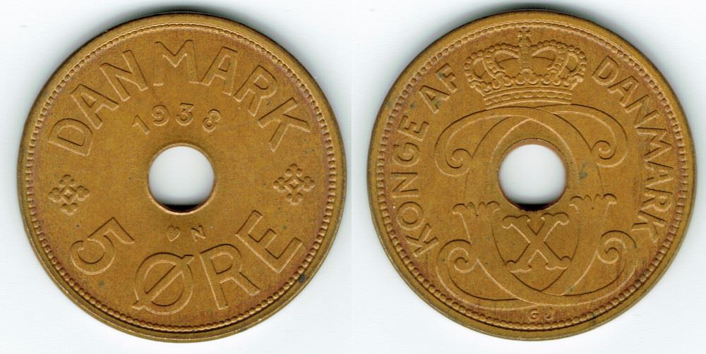 5 øre 1938 i kv. (0) - enkelte minipletter