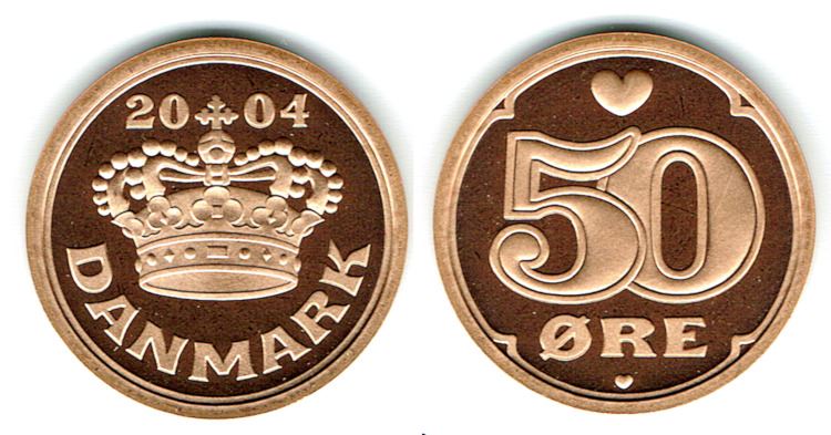 50 øre 2004 i kv. M - fra Kgl. Proof møntsæt