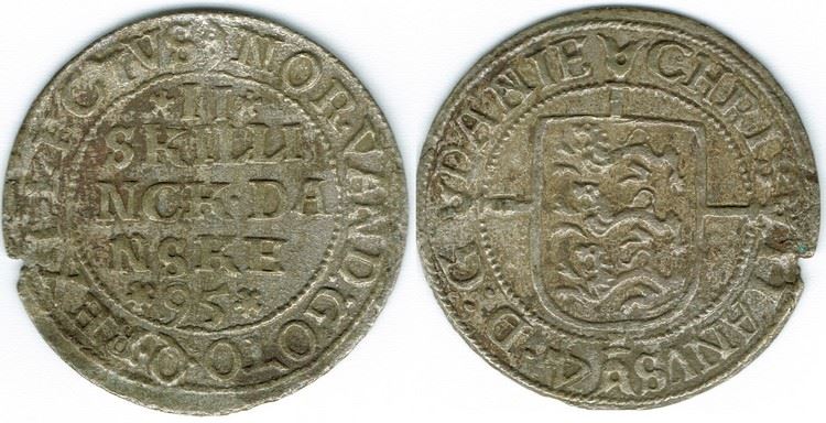 År 1595 - Chr. IV - 2 skilling i kv. 1+ H67 Sieg 28