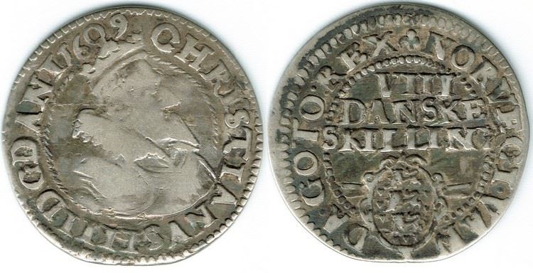 År 1609 - Chr. IV - 8 skilling i kv. 1+/1 H93B Sieg 54.3