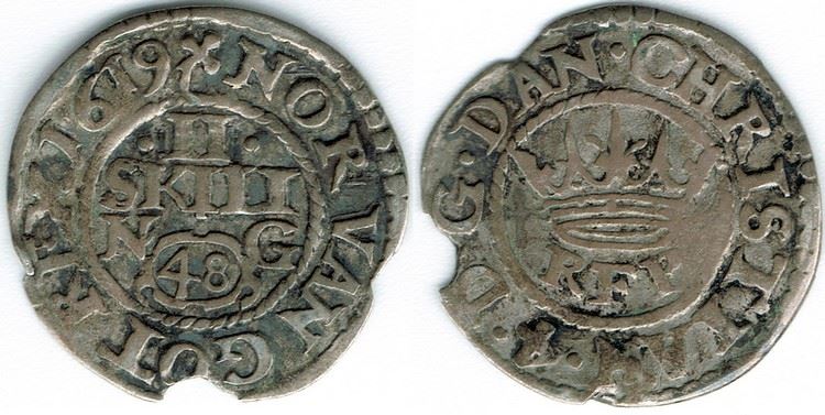 År 1619 - Chr. IV - 2 skilling i kv. (1 - 1+) H112A Sieg 32.1