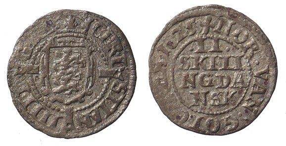 År 1625 - Chr. IV - 2 skilling i kv. (1+) - H134A, Sieg 35.1