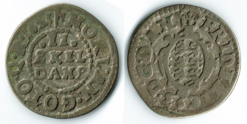År 1651 - Fr. III - 2 skilling i kv. 1 Sieg 15.2 H126B
