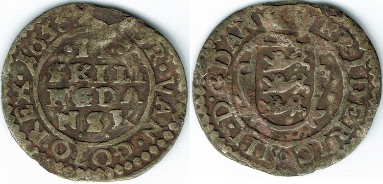 År 1653 - Fr. III - 2 skilling i kv. 1 H130A Sieg 16.1