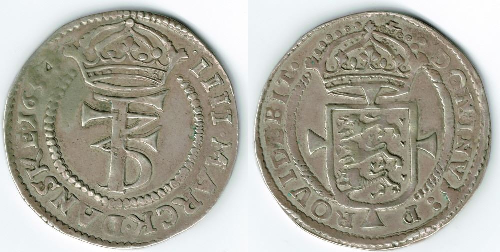 År 1654 - Fr. III - 1 krone i kv. 1+