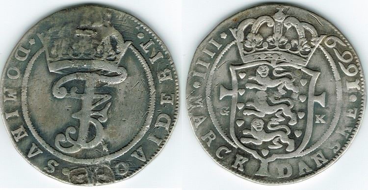År 1660 - Fr. III - 1 krone i kv. (1) - brochespor H113A Sieg 59.1