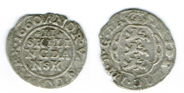 År 1660 - Fr. III - 2 skilling i kv. 1+ Sieg 18.1 H132A