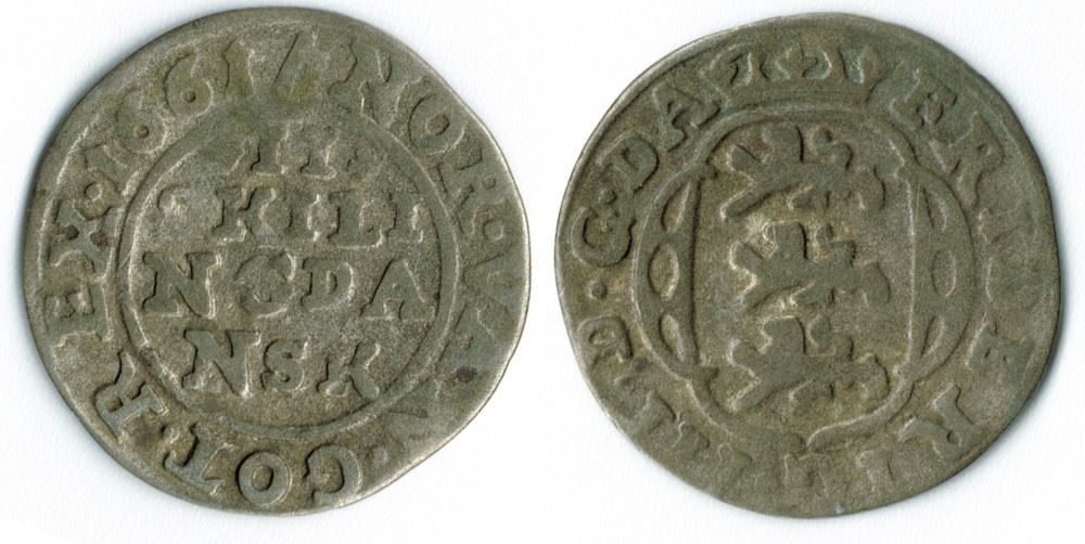 År 1661 - Fr. III - 2 skilling i kv. 1 Sieg 18.1 H132A
